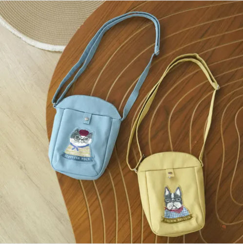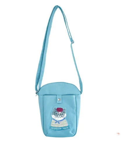 這次為大家帶來戴著文青眼鏡的法鬥與蘇格蘭摺耳貓,搭配清爽明亮的鵝黃與水藍色系,背上它瞬間充滿日系清新感,走在路上絕對超吸睛。