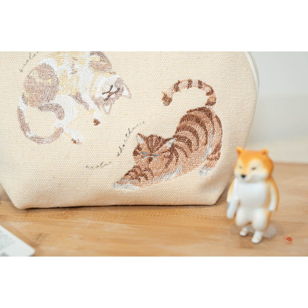 【 噓~輕輕的!別吵醒主子 💤 日本精選 貓咪刺繡萬用包 】