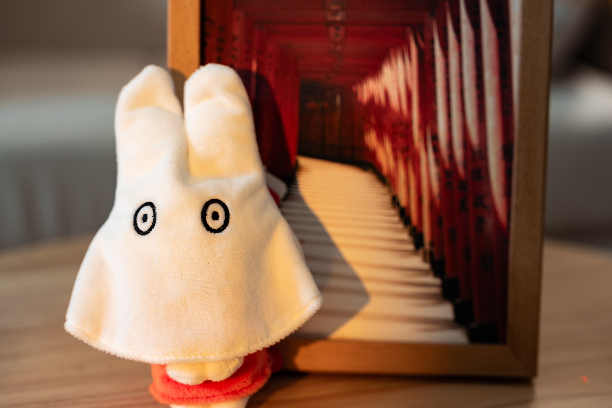 這款最特別的設計在於「互動感」,輕輕掀開白布,裡面還是穿著經典橘色洋裝的米飛喔!就像在跟你玩躲貓貓一樣。 柔軟的絨毛觸感搭配擁抱的坐姿放在辦公桌或是家裡桌上,彷彿一隻可愛的小幽靈正飄在身邊守護你。雖然是萬聖節主題,但這種呆萌的治癒感,讓人一年四季都想帶著她出門!