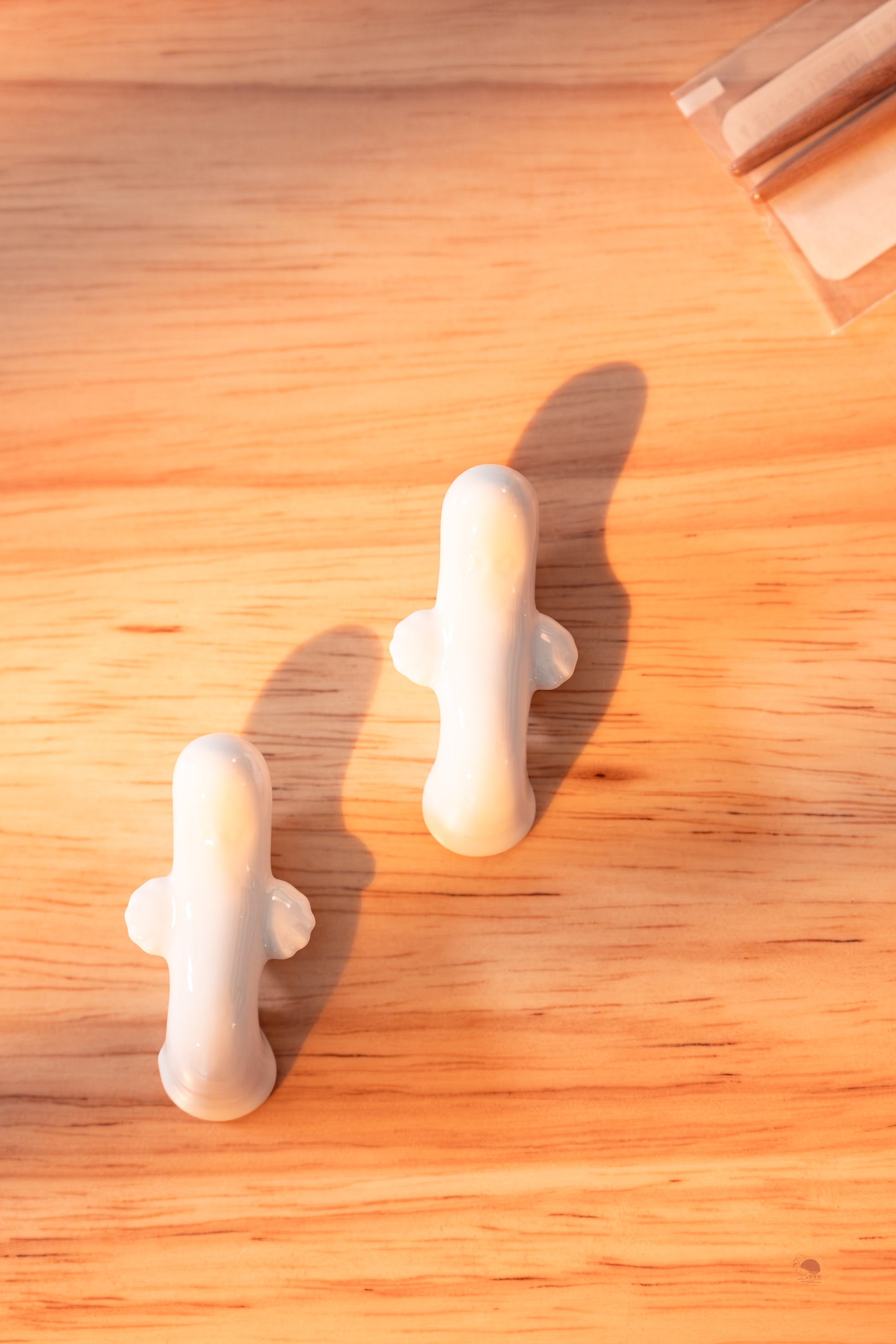 3️⃣ 超萌精靈造型筷架:禮盒內附兩只極具代表性的「溜溜們 (Hattifatteners)」立體陶瓷筷架。潔白圓潤的造型靜靜守候在碗盤旁,不僅是實用的餐具收納,更是餐桌上最能療癒人心的童趣小風景。
