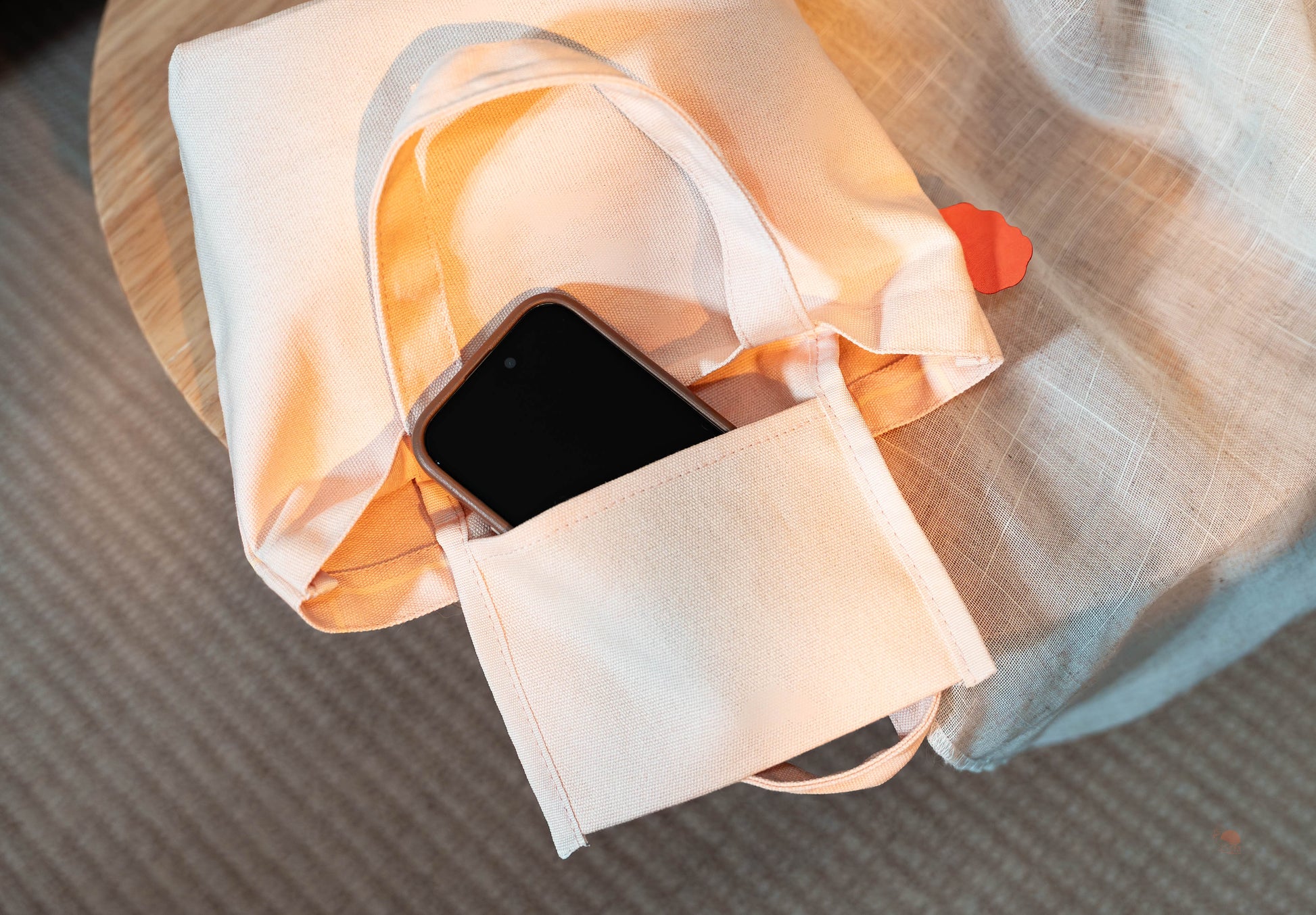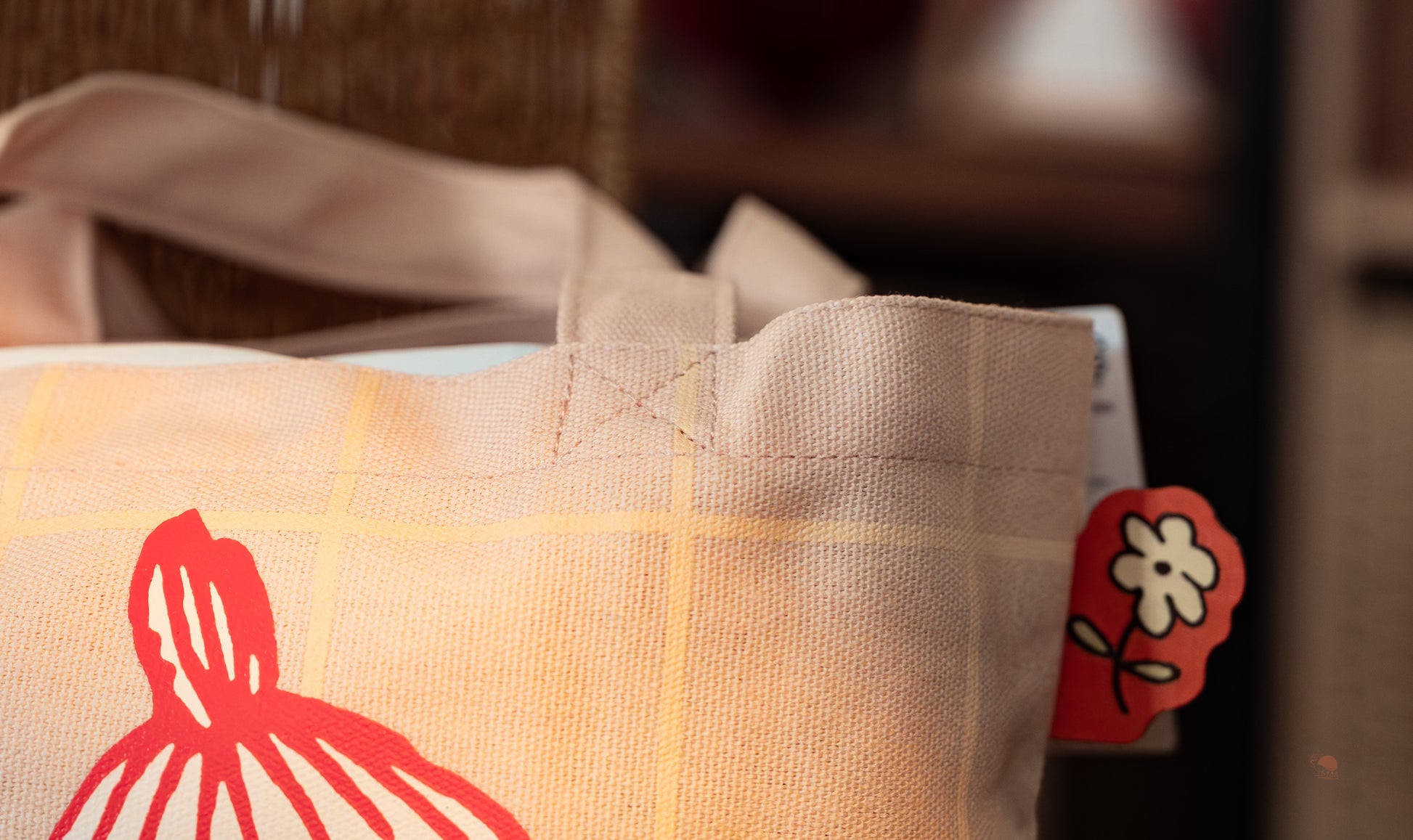 材質採用厚實的帆布,不僅耐重且手感極佳。最貼心的是,包包特別設計了「專屬小內袋」!可以用來裝手機、鑰匙或悠遊卡,找東西不再海底撈針。大小適中的尺寸,無論是當作日常外出提袋、上班族便當袋,還是散步隨身包,都實用又療癒!