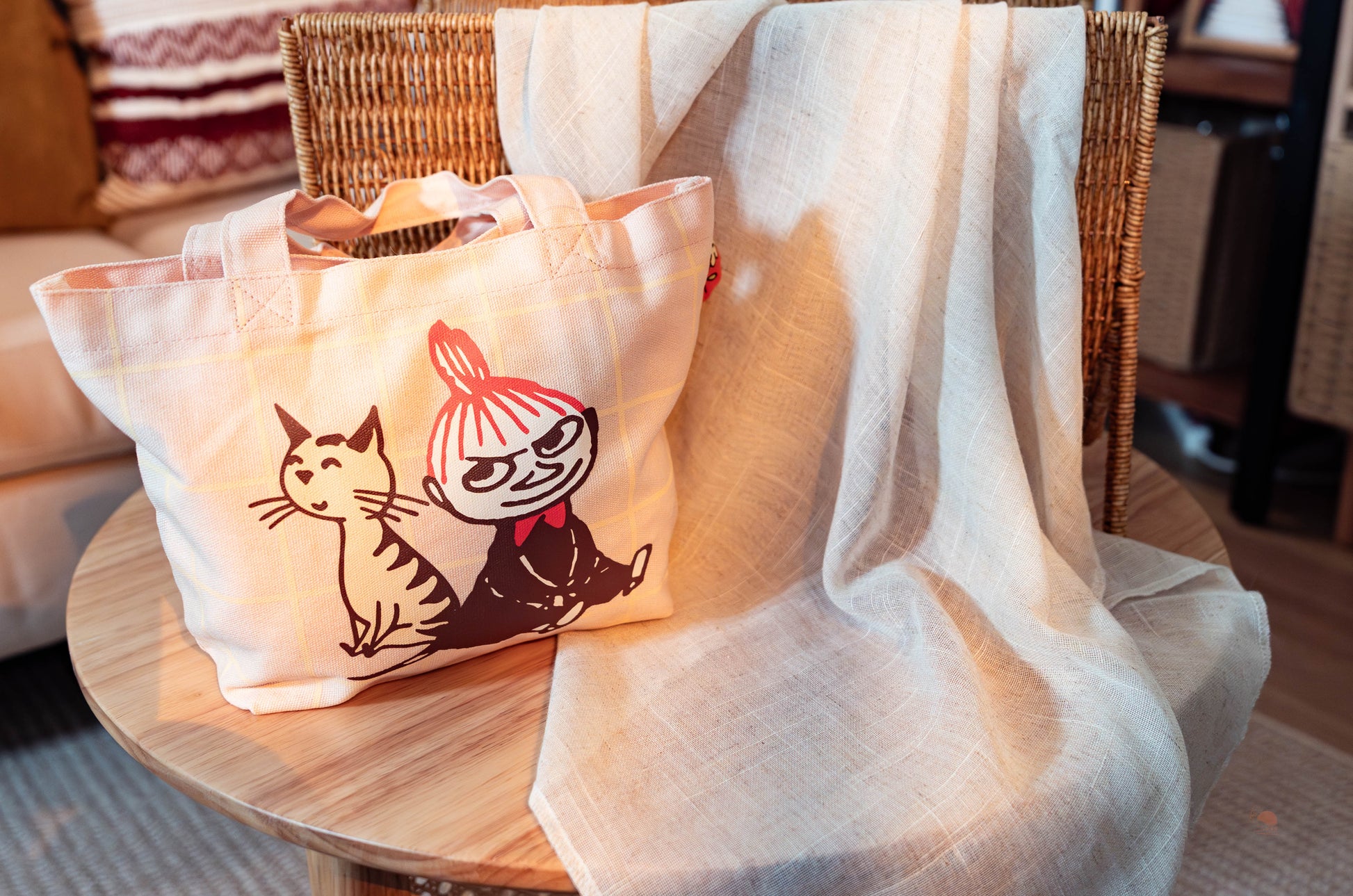 嚕嚕米粉絲看過來!這次換古靈精怪的「小不點」當主角啦❤️ 經典的包包頭、調皮的眼神,旁邊還跟著一隻可愛貓咪,搭配溫柔的淺黃格紋背景,充滿濃濃的北歐童話氛圍。
